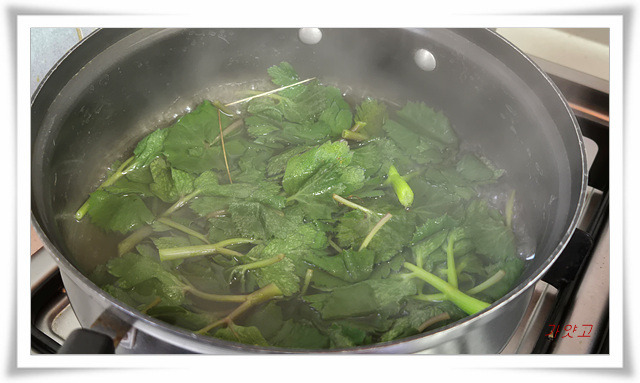 끓는 물에 소금 조금 넣고 살짝 1분 데쳤어요