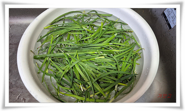 초벌 부추도 딱 한 접시 분량만 잘라다,