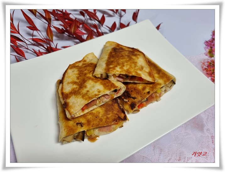 '케사디야'는 치즈와 채소를 또르띠야에 넣어 만든