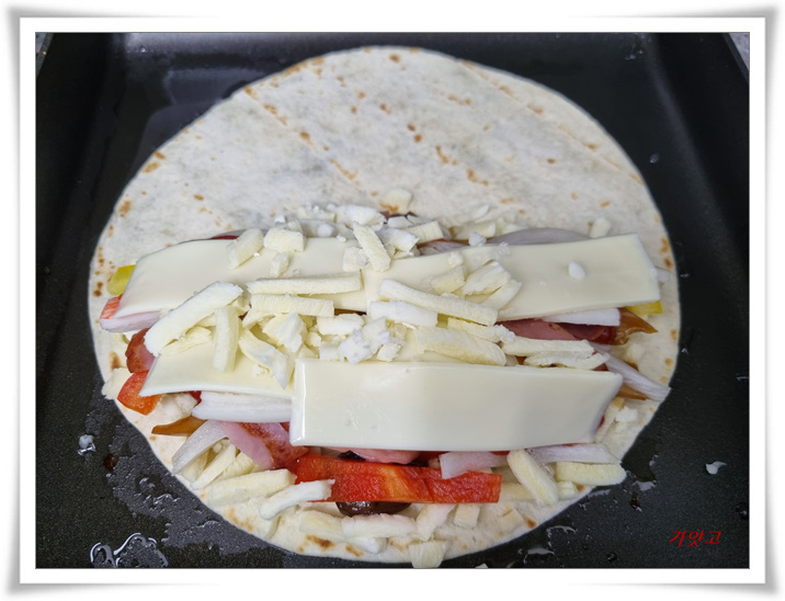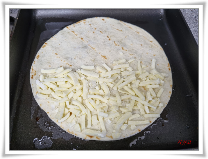 또르띠야 절반만큼만 모짜렐라 치즈를 펼쳐주고,