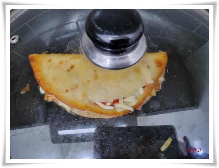 또르띠아를 하나 올려주고, 일단 불을 끕니다.