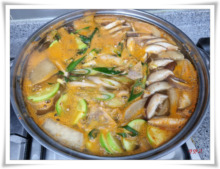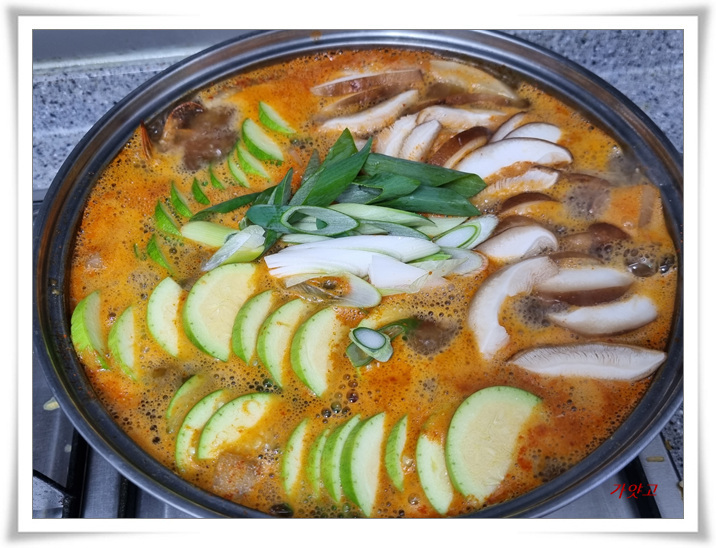 숟가락으로 긁어내어 냄비에 같이 끓여줍니다.