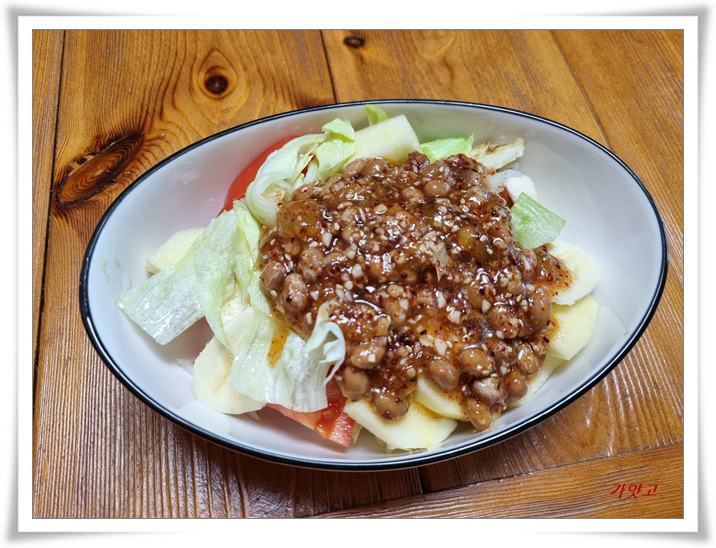 청국장 만들어둔 것을 샐러드 소스에 섞어