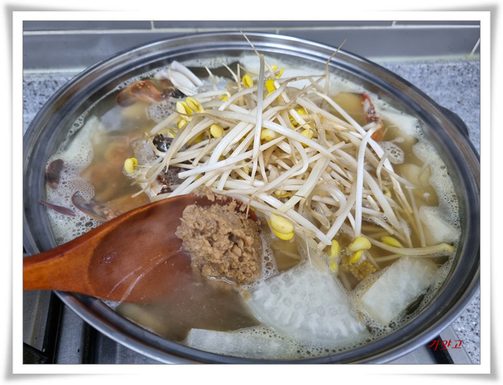 콩나물 두 줌 정도 같이 넣어 주고요,