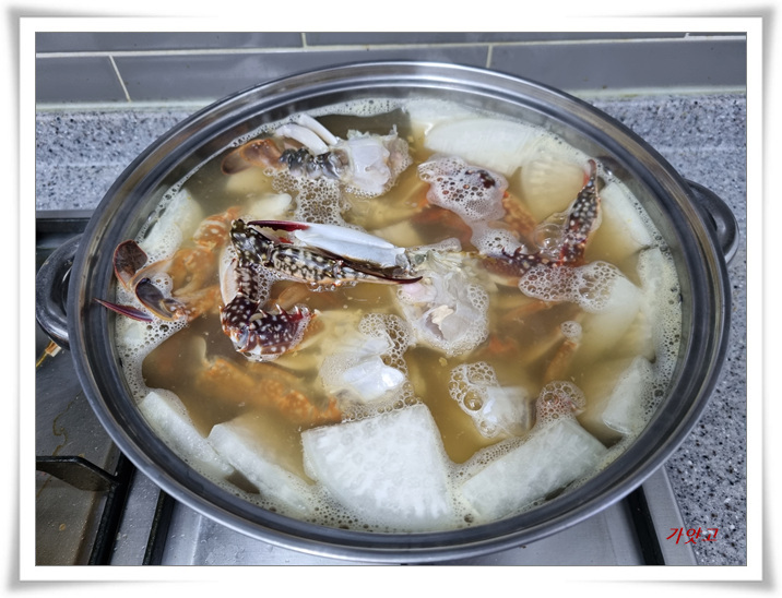 꽃게가 살짝 익을 정도로 끓인 뒤에