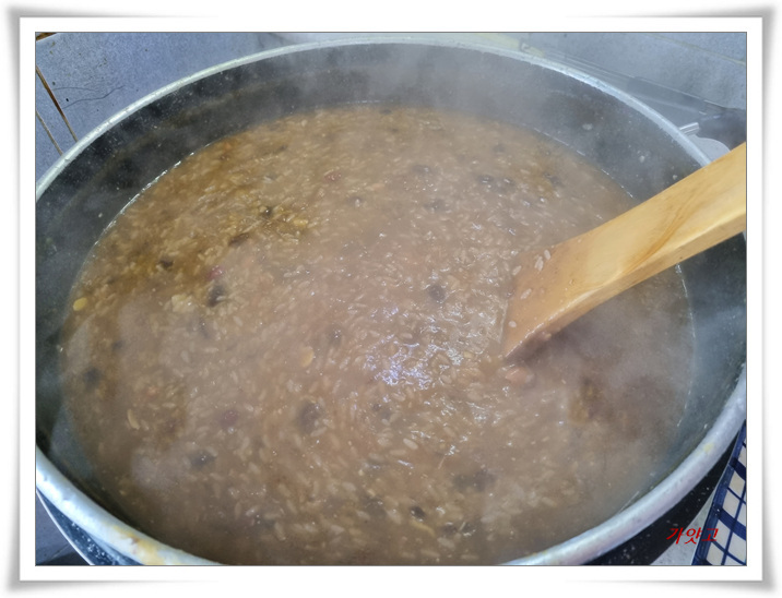 이웃 할머니들이랑 나눠 먹으려고 많이 끓였어요~~ㅎㅎ