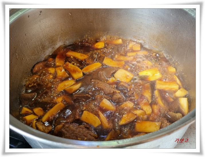 먼저 30분쯤 그냥 끓여 육질을 부드럽게 만들어줍니다.