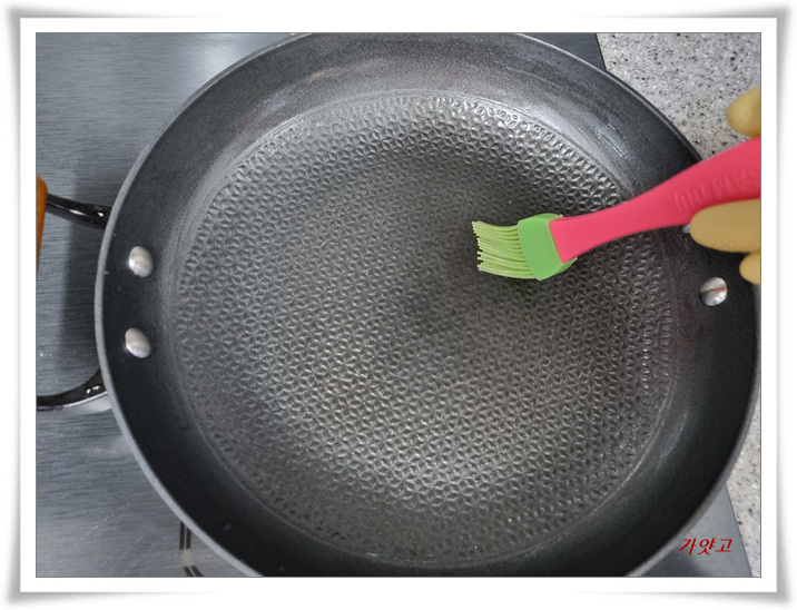 밑이 두꺼운 프라이팬에 기름을 발라주고,