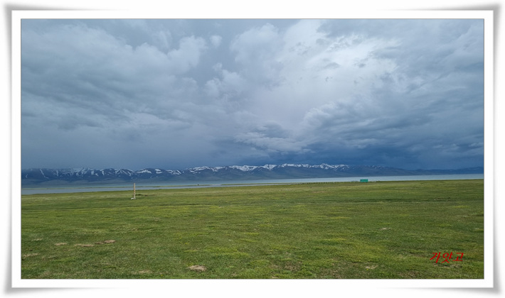 초지와 호수와 설산과 하늘과 먹구름