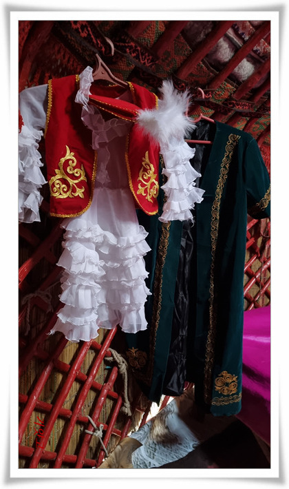 유르트 한쪽에는 전통 의상을 걸어두었는데