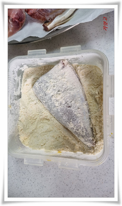 앞,뒤로 밀가루를 촘촘하게 묻혀,