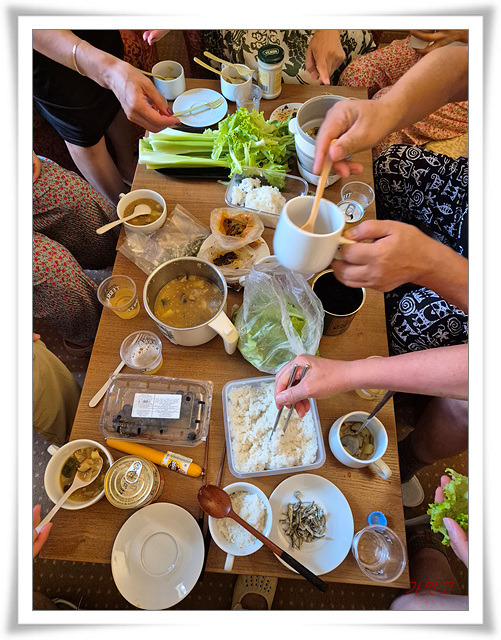 다들 잠시 호수를 바라보며, 간식 먹는 즐거움을 누렸다.