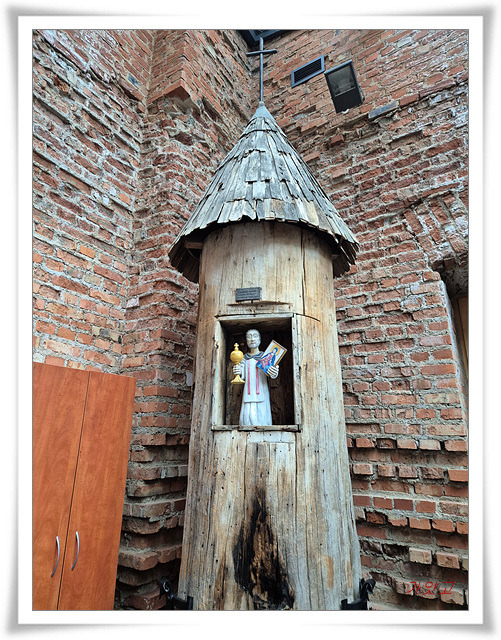 붉은 벽돌과 스테인드글라스 등의