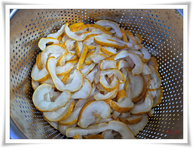 얄팍하게 썰어, 채소 짤순이에 눌러 2차로 물기 빼주고