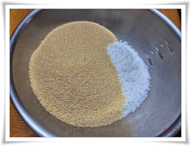 가운데 홈부분으로 소금과 원당 섞은 것을 채워줍니다.