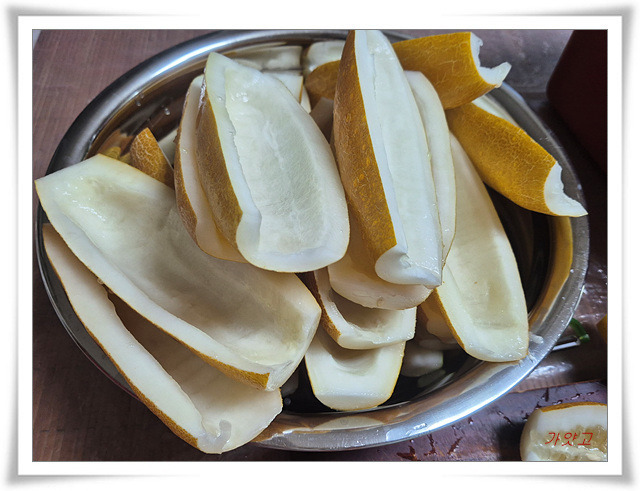 물기 빼고 장아찌 담글 준비합니다.