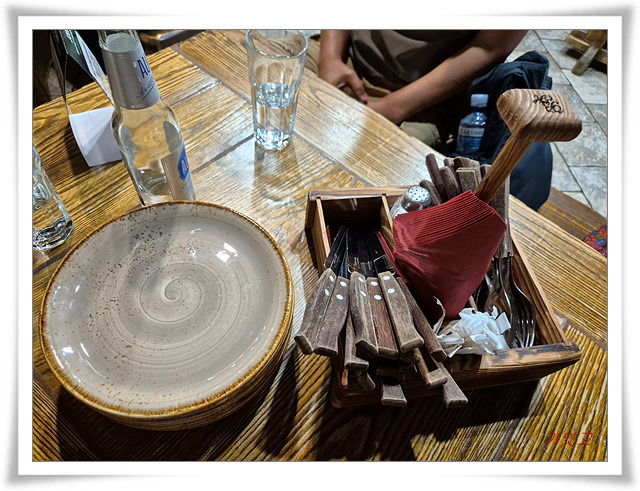 접시와 포크 나이프를 가져다주는데