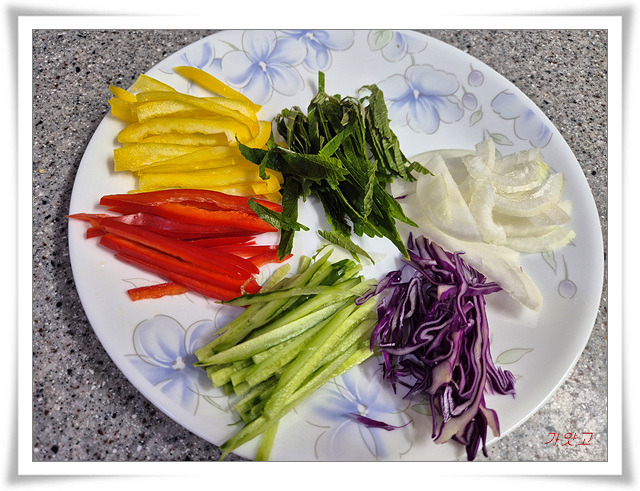 냉채 재료 채소들은 냉장고 있는 대로 색상 맞춰 준비했어요