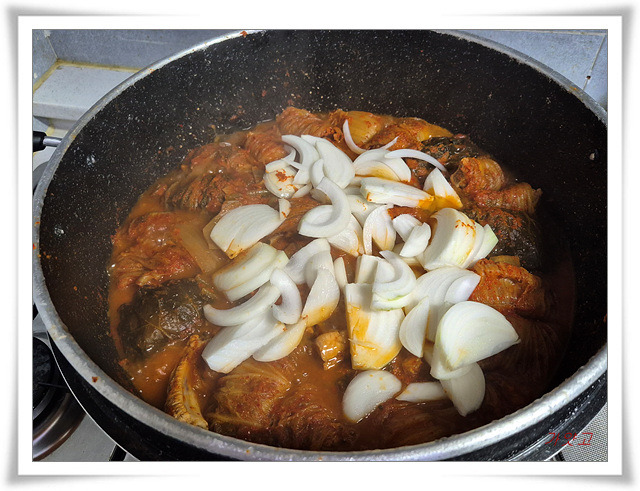 그리고 뚜껑을 덮고 중불로 40분 정도 끓여줍니다.