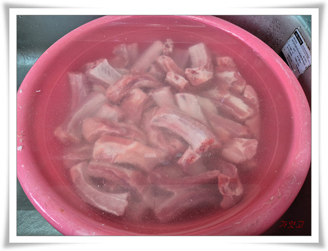 4~5시간 정도 물에 담가 핏물을 우려 주었습니다.