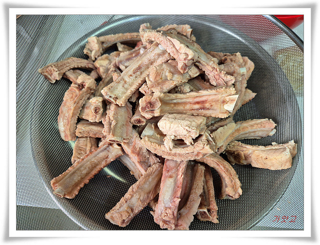 남은 돼지등갈비와 묵은지의 속고갱이 부분들을