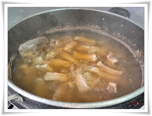 돼지등갈비를 넣고, 끓어오르기 시작하면