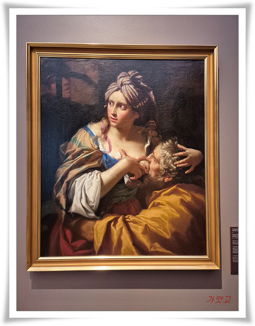몰래 젖을 먹이는 딸의 모습을 그린 그림인데