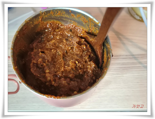 된장과 볶음고추장, 그리고 고추장물 1봉을 섞어