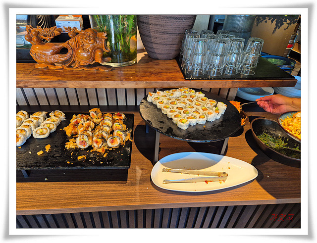 뷔페식 스시와 튀김 등을 마음대로 골라 먹고,