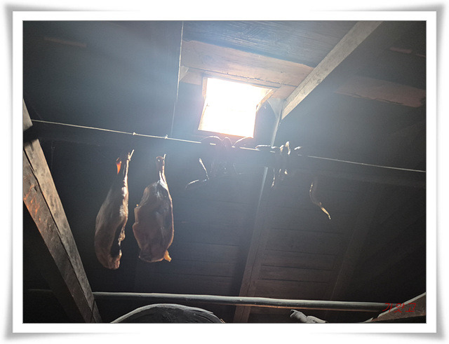 올라가는 연기에 훈연이 되게 말리고 있었다.