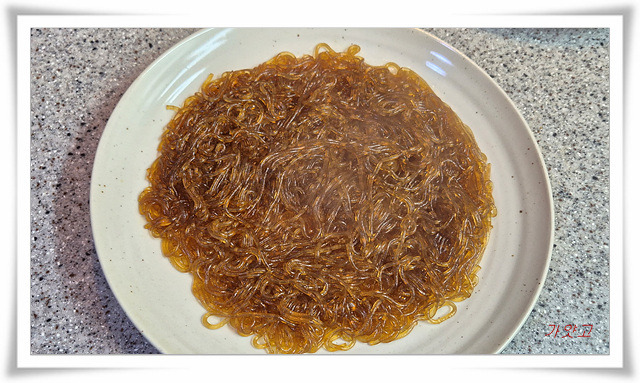 커다란 접시에 볶은 당면을 바닥에 깔고요