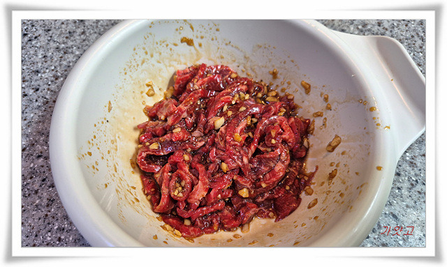 쇠고기는 양조간장, 참기름, 다진 마늘,