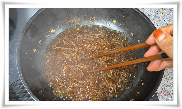 불린 당면은 끓는 물에 3분 삶아 건져