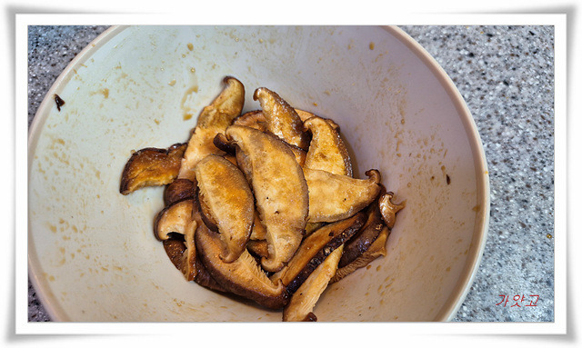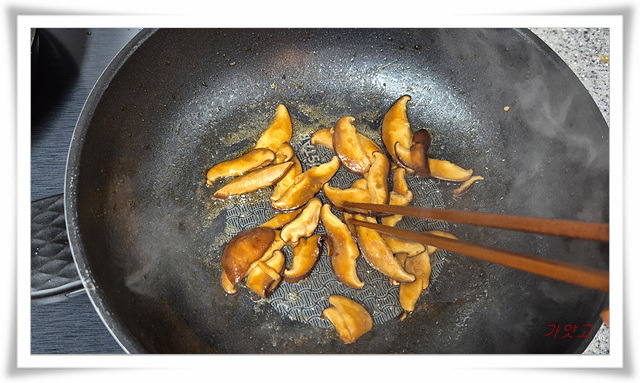 밑간해둔 목이버섯이랑 표고도 볶아줍니다.