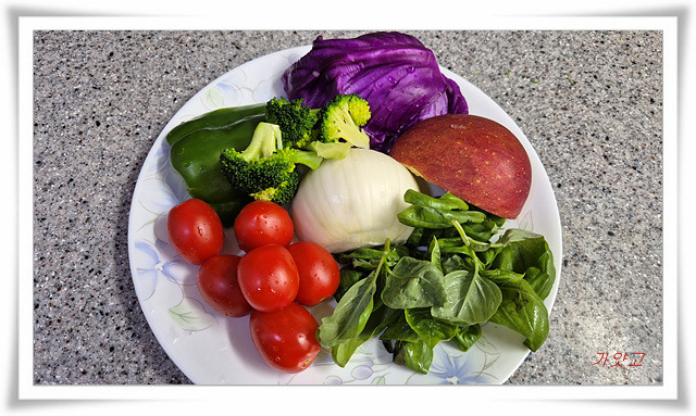 적양배추, 사과, 청피망, 브로컬리, 양파