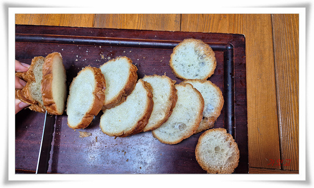 바케뜨 빵을 1cm 두께로 잘라줍니다
