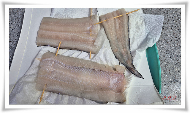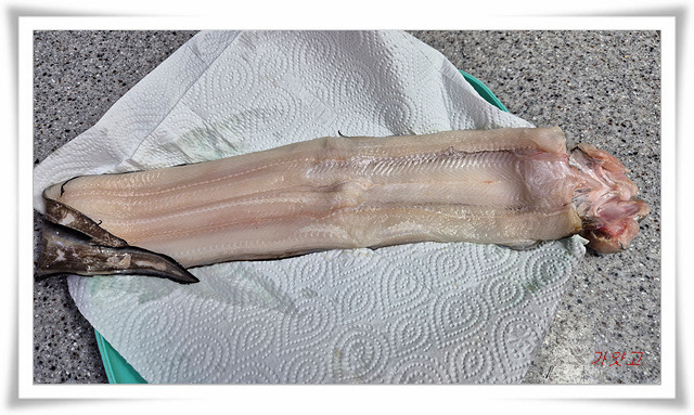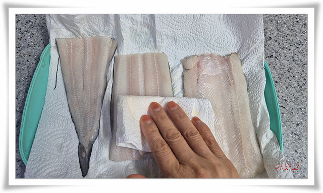 세 토막으로 잘라, 키친타올로 물기 완전 제거하고,