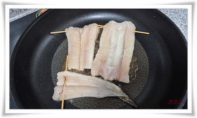 밑간한 장어를 고치로 윗부분만 고정시켜