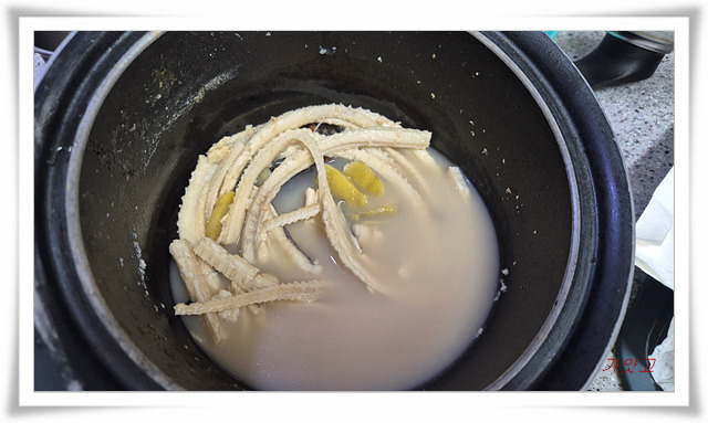 40분간 푹 끓인 후에, 생강이랑 통후추를 넣고