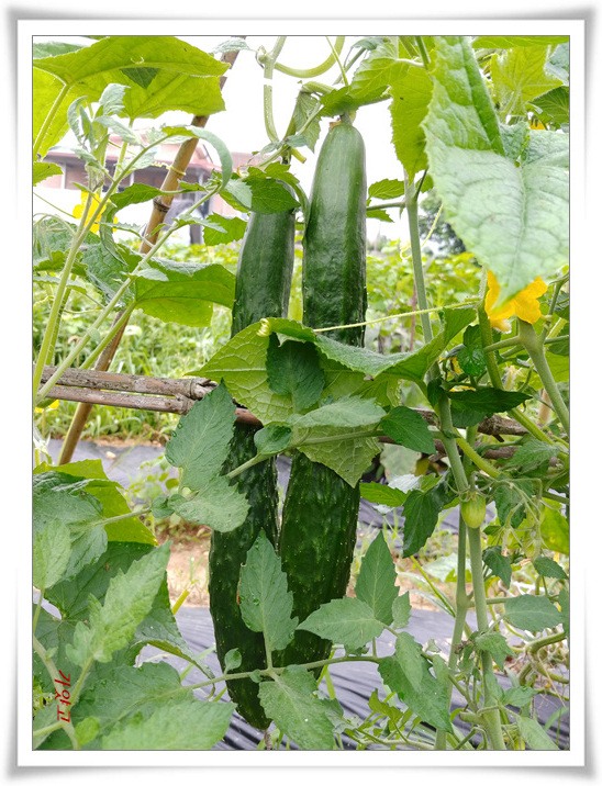 밭에 오이랑 가지가 주렁주렁, 날마다 엄청 달립니다.