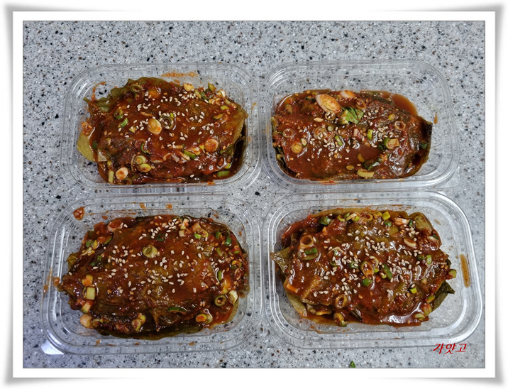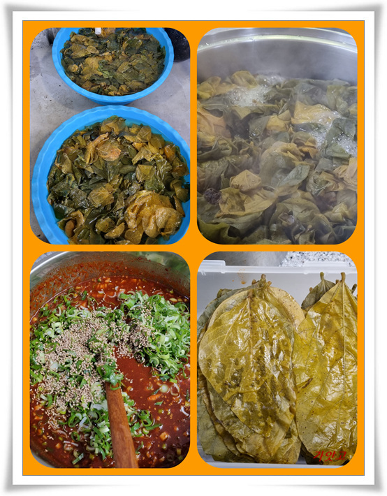 한 달 전에 소금물에 삭혀 두었던 콩잎을 꺼내