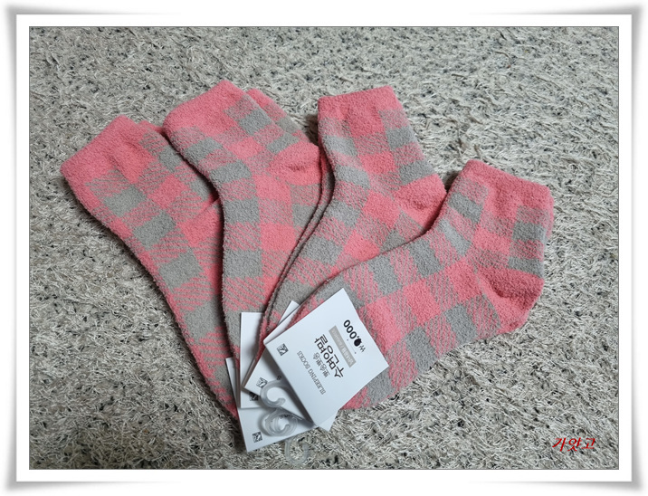 할머니들 드리라고 포근한 수면양말을 4켤레 넣어 주었어요