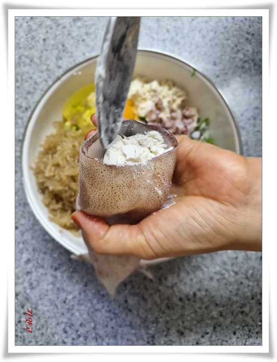 오징어 내부로 밀가루를 한번 입혀줘