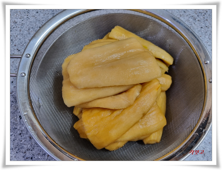 짠기를 좀 빼 준다음, 체에 건져 두었다가,