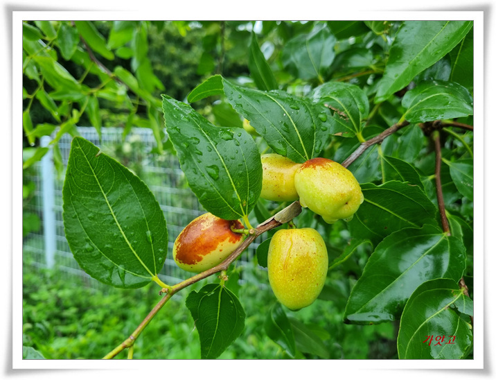 대추가 비 맞으며 제법 볼을 붉혔어요