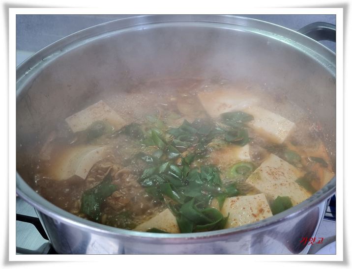 두부가 부풀어오를 때까지 마지막으로 끓여요.