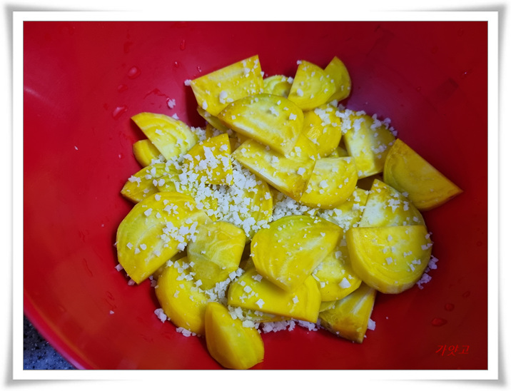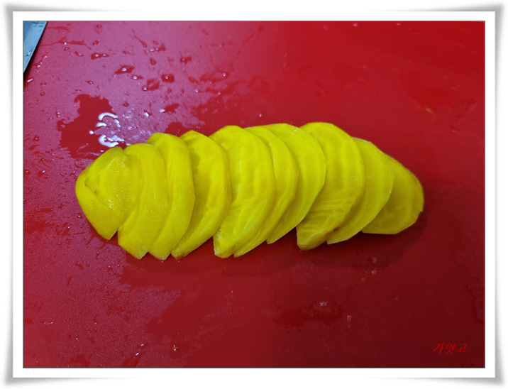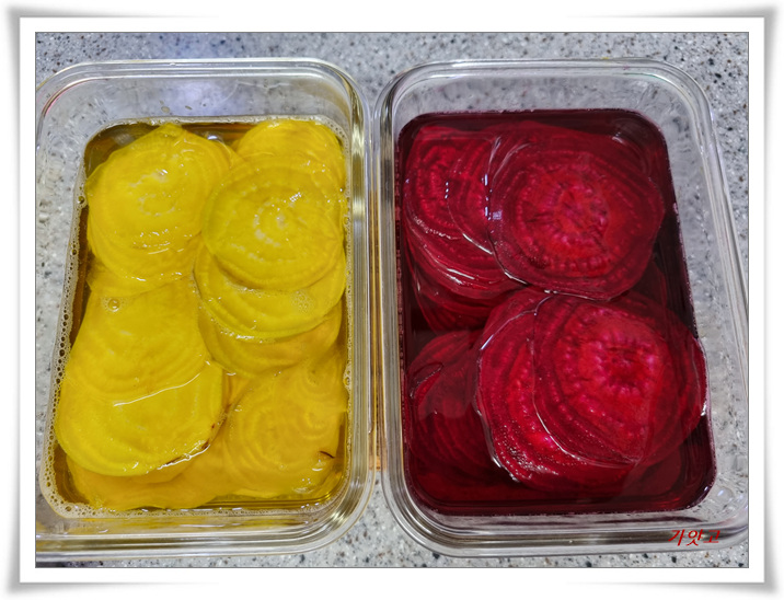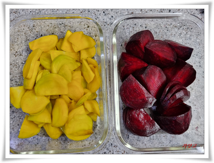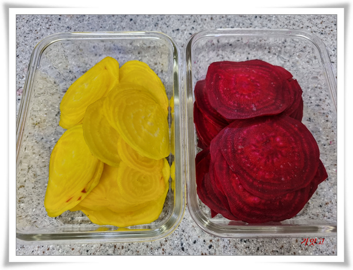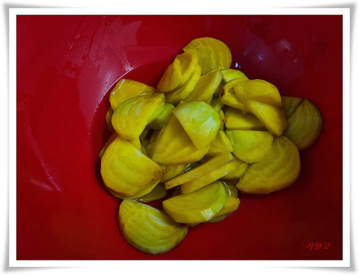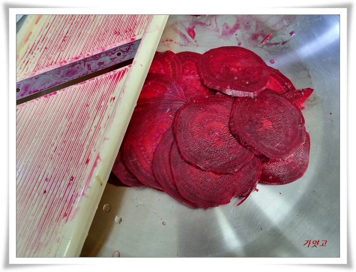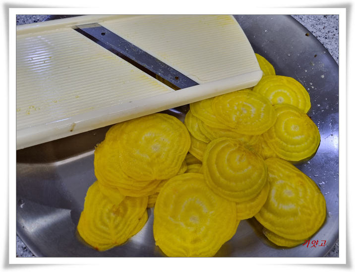 황금비트는 단무지 크기로 모두 잘랐습니다.