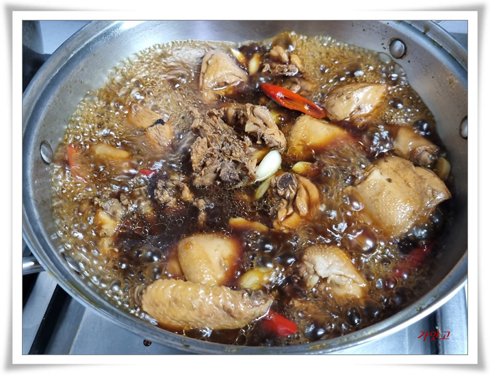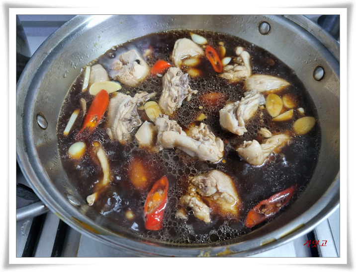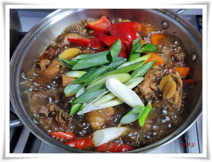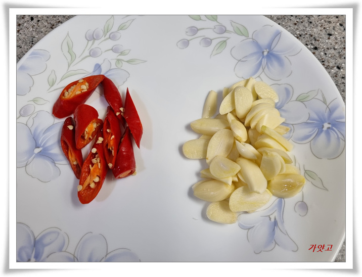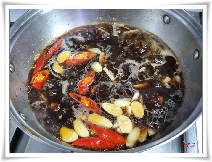 그리고 위에 준비한 고추와 마늘을 함께 넣어 끓입니다