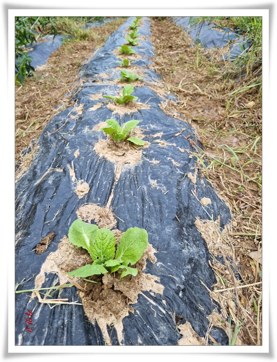 배추모종이 비 맞으며 제법 자리를 잡았고