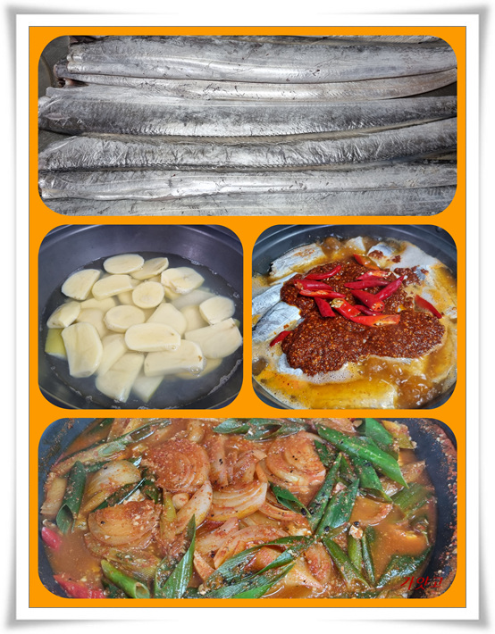 무와 감자를 깔고 칼칼한 양념장 끼얹어